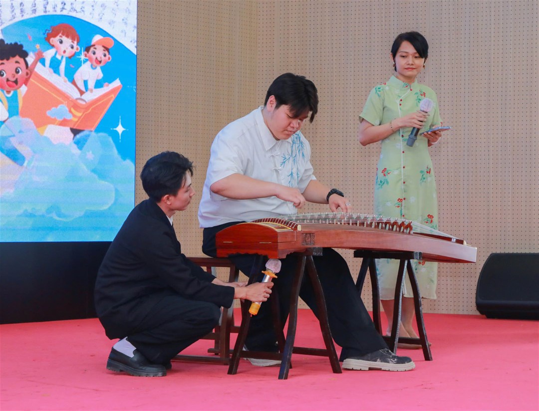Giảng viên, cô Đặng Thục Anh cùng thầy Lê Chí Trường biểu diễn tiết mục với đàn cổ tranh