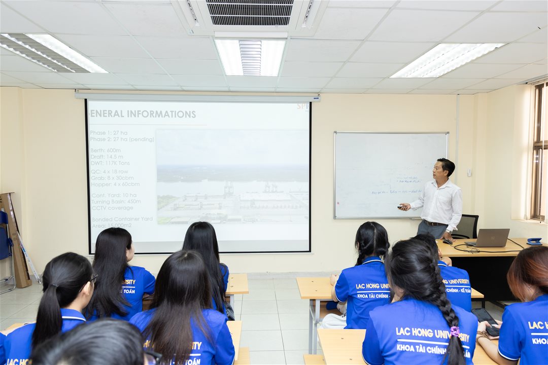 As part of the initiative to enhance practical learning experiences for students majoring in Logistics and Supply Chain Management, on the morning of December 10, 2025, the Faculty of Finance and Accounting, Lac Hong University, organized an industry field trip and experiential learning session at the SP-PSA International Container Terminal for class 25LG112. This activity serves to bridge theoretical knowledge with real-world operations, enabling students to gain deeper insights into port operation processes—an essential component within the global logistics chain.