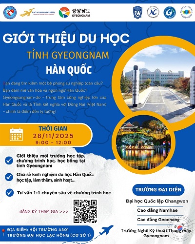 • - Introduction to the learning environment, academic programs, and scholarships in Gyeongnam province – one of South Korea’s major industrial hubs and the sister province of Dong Nai;
