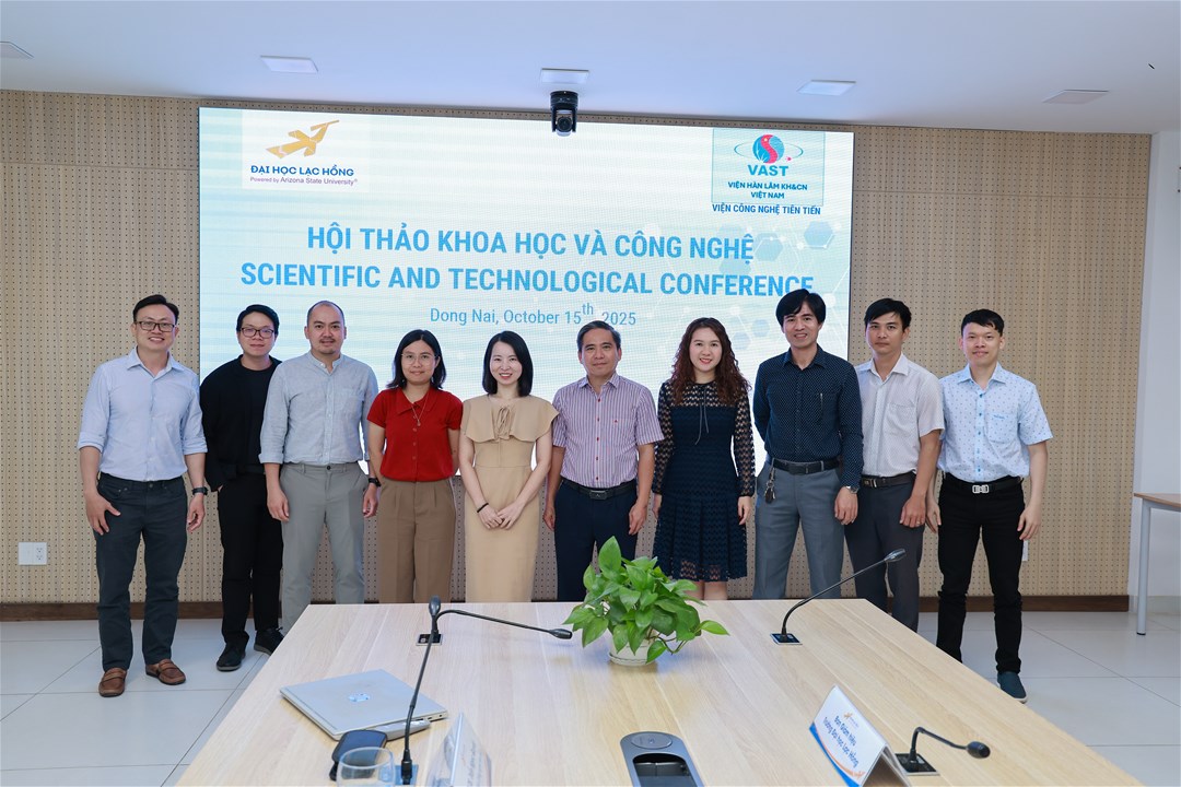 On the morning of October 15, 2025, at the meeting room of Lac Hong University, the Faculty of Pharmacy, LHU, in collaboration with the Institute of Advanced Technology, organized a Scientific and Technological Conference to strengthen research cooperation, share experiences and guide development in the field of applied science.