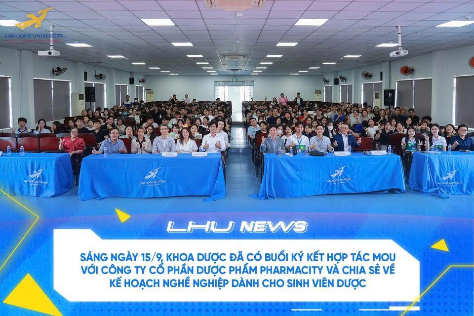 On the morning of September 15, 2025, at Lac Hong University (LHU), the Faculty of Pharmacy, in collaboration with Pharmacity Pharmaceutical Joint Stock Company, solemnly held a Memorandum of Understanding (MOU) signing ceremony and a series of "Career Orientation" workshops for students.